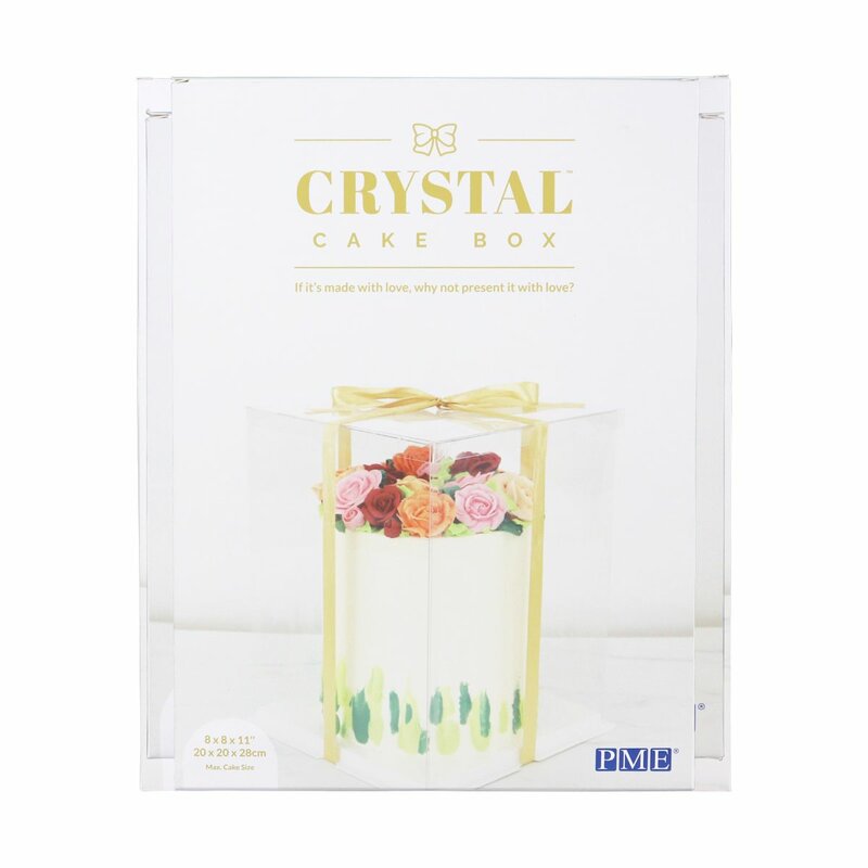The Crystal Cake Boxes from PME are the perfect way to present your cakes. It is a crystal clear box made from PET plastic for all-round visibility. The boxes are individually packed with a strong padded food-grade baseboard of 10mm deep and a gold satin ribbon. With normal use it can be reused over and over.