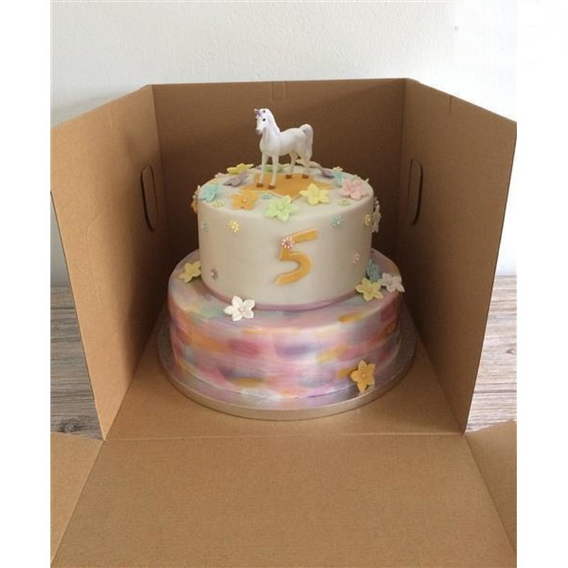 Handy cake box from FunCakes with a wood look. Due to its height the cake box is ideal for decorated cakes and it has a handy window. Perfect to give away your cake as a present.