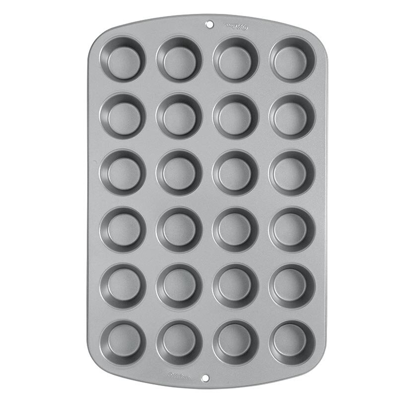 Die Recipe Right Antihaft-Minimuffin-Backform von Wilton gewährleistet durch ihre solide Form aus einem Guss eine gute Wärmeübertragung und verzieht sich nicht. Die Antihaft-Beschichtung sorgt dafür, dass sich die Cakes leicht aus der Form lösen und dass die Form leicht zu reinigen ist.